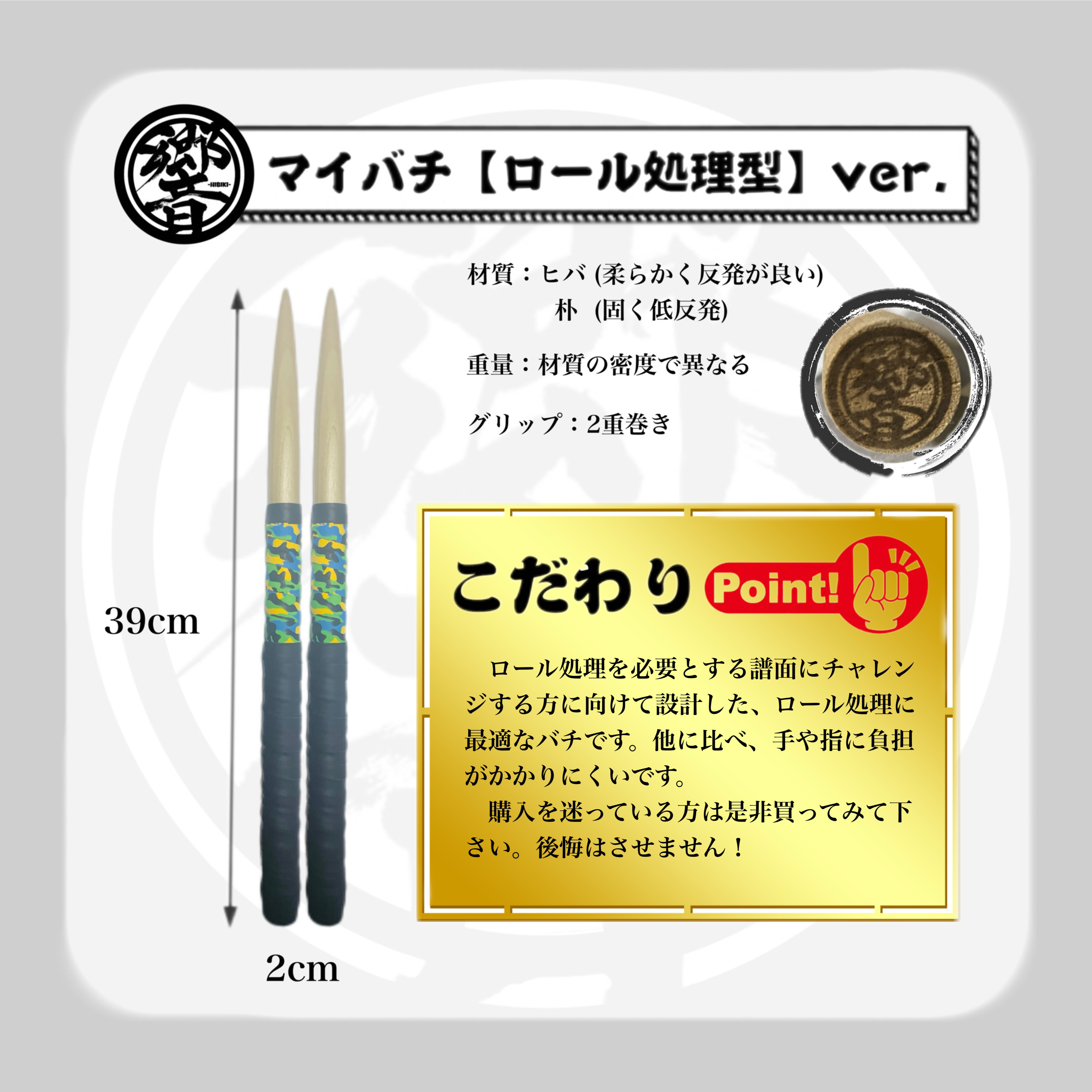 マイバチ工房-響-では、「Resonate in your heart(あなたの心に響け)」をモットーに、全身全霊をかけて至高のマイバチを作るよう励んでおります。
